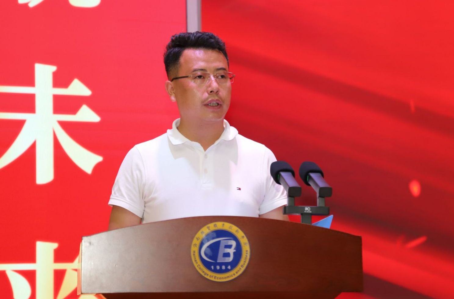 毕业生家长代表廖坎对辛勤耕耘、默默奉献的老师们致以最诚挚的感谢。他说,当看到孩子们从不知所措的新生蜕变为有追求、有思考、有担当的青年时,内心无比骄傲。希望孩子们牢记学校的培养,踏实做人、认真做事,海经贸越办越好,培养更多优秀人才。