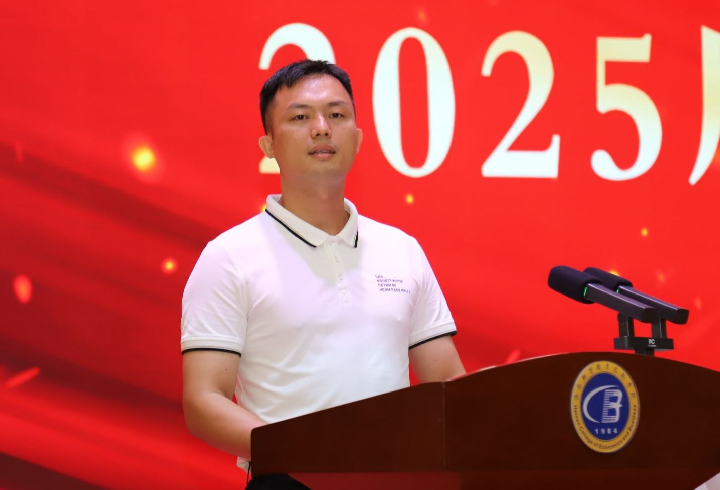 2025届毕业生代表、国际旅游学院学生王旭鸿深情回忆了大学三年的点滴时光和为梦想奋斗的心灵感悟。他感谢母校为学子们创造的良好学习环境,感谢老师们的谆谆教诲和悉心耕耘。祝愿全体毕业生们前程似锦、成就辉煌。