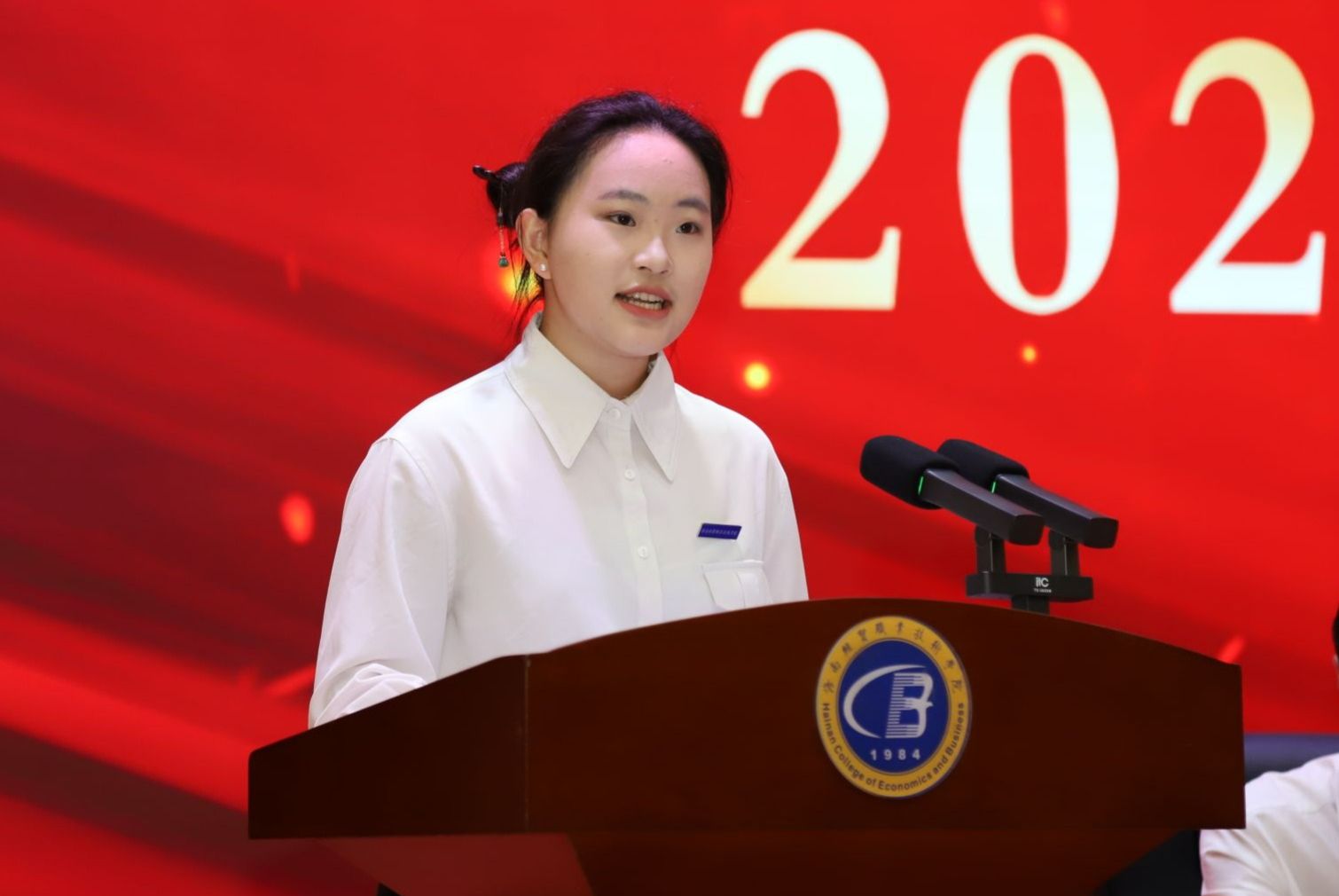 “你们是我学习的榜样和生活的引路人。”在校生代表、乌拉尔学院学生王沛泽对学长学姐们的顺利毕业表示祝贺,她感谢学校的培育、老师的教导和家长们的无私付出,分享了与学长学姐们共同度过的美好时光,为即将离校的毕业生们送上最真挚的祝福。