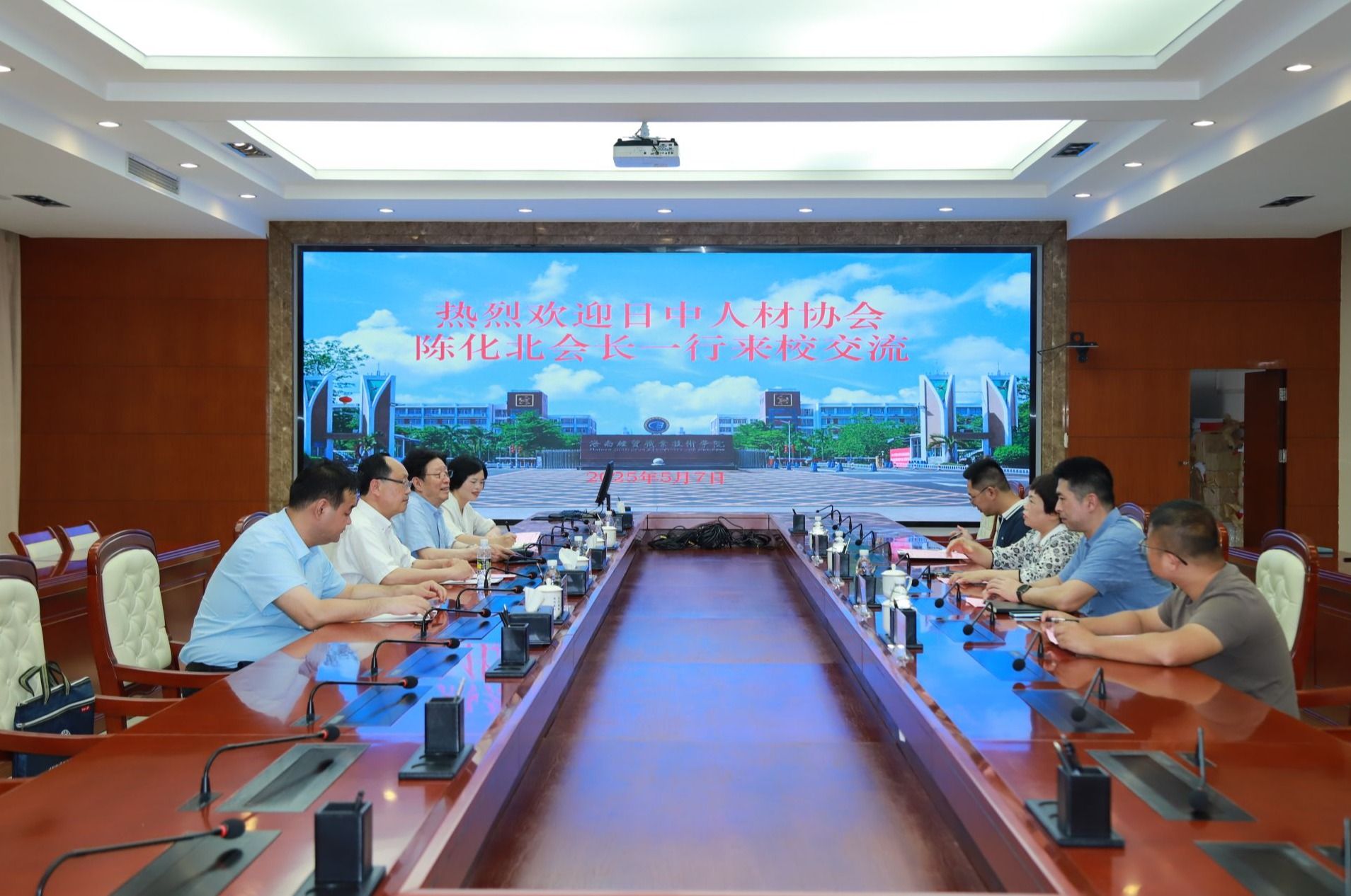 2025年5月7日,日中人材协会会长陈化北一行4人来到太阳网集团tcy8722,就国际交流、人才培养工作进行座谈。学校党委委员、副校长万力维出席座谈会。
